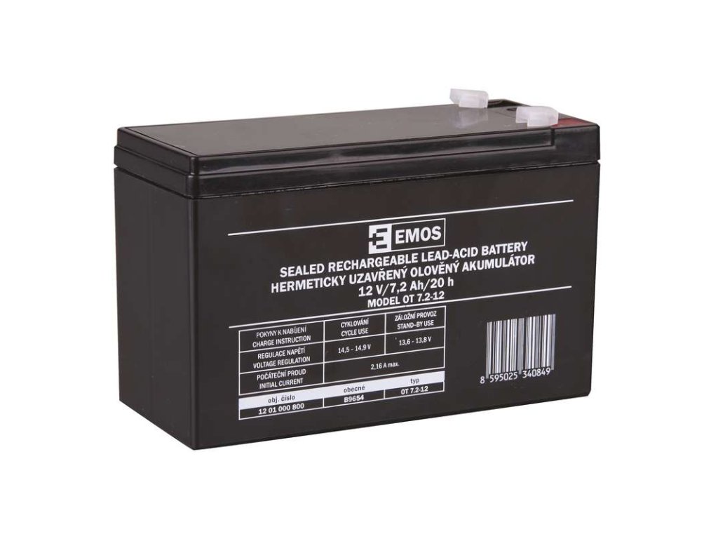 Akumulátor EMOS je vhodný jako náhradní baterie pro elektronické systémy - EZS, EPS (ústředny Jablotron a Paradox), záložní systémy výtahů, dětské vozítka apod.