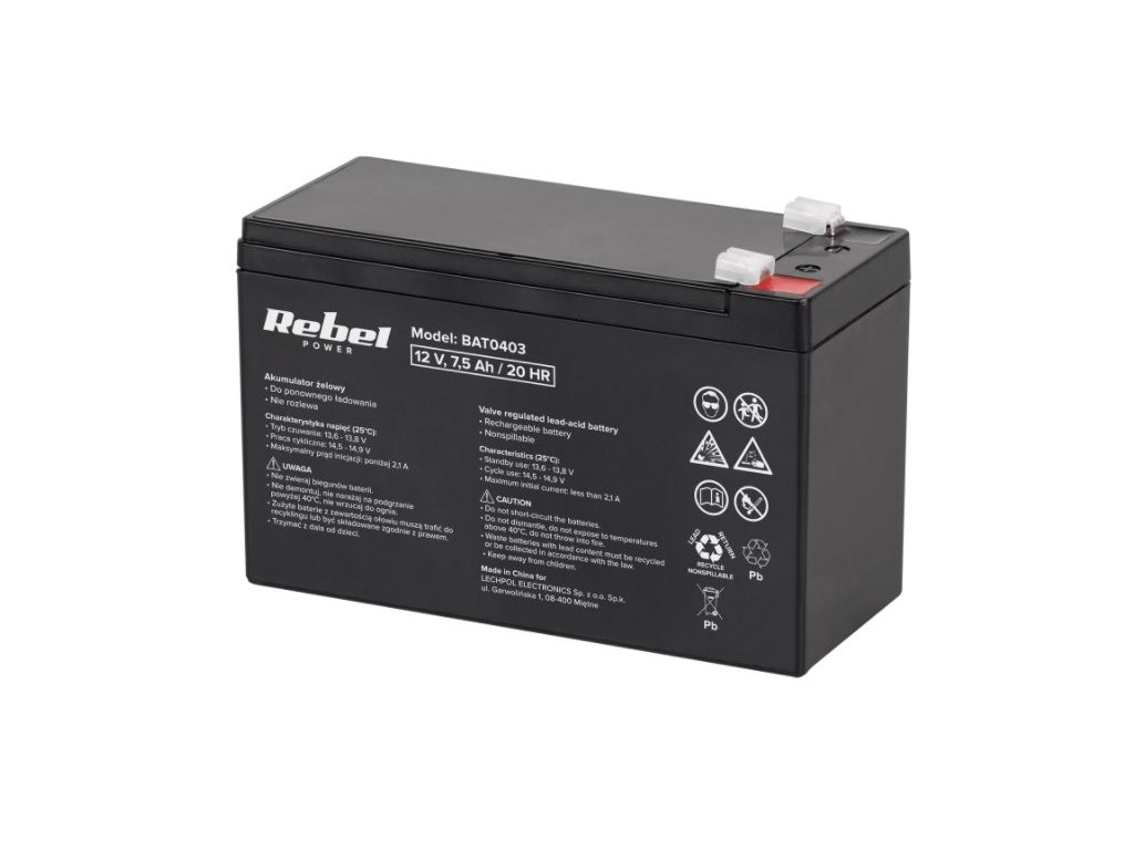 Baterie olověná 12V/ 7,5 Ah REBEL bezúdržbová