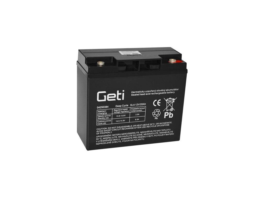 Baterie olověná 12V / 20Ah GETI bezúdržbový akumulátor Trakční