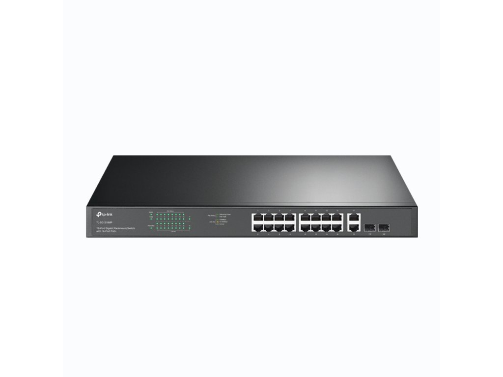 TL-SG1218MP je nemanagovatelný rackmount PoE switch značky TP-Link s 18ti Gigabit LAN porty a dvěma combo SFP. Prvních 16 portů mají rychlost 10/100/1000Mbps a podporují 802.3af/at PoE s maximální spotřebou 30W/port a celkovým PoE budgetem 250W. Další 2 porty jsou opět Gigabitové, sloužící jako uplink do sítě z čehož oba jsou combo porty s Gigabitovými SFP hned vedle nich. Obsah balení Zařízení Napájecí kabel Úchyty do 19" rackuDodatočné parametre