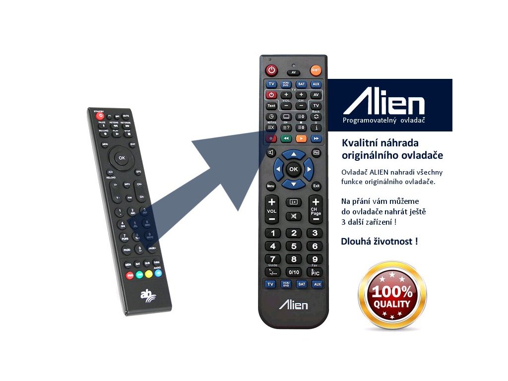 Ovladač je naprogramován na vašem zařízení. ALIEN nahrazuje všechny funkce originálního ovladače.