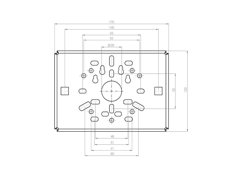 Vhodné pro všechny typy kamer * Rozměry: 170 x 120 mm * Hmotnost: 1.43 Kg * Tloušťka tyče: průměr 30 – 105 mm * Součástí balení montážní šrouby a příslušenství * Materiál: železo, tloušťka 3.0 mm * Provedení: galvanizované železo * Barva stříbrná *
