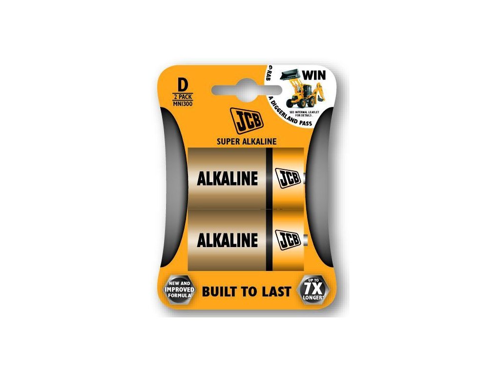 JCB SUPER alkalická baterie LR20, blistr 2 ks JCB Super alkalické baterie poskytují vysokou kvalitu a jsou vhodné pro zařízení se středními až vysokými požadavky na energii. Zajistí spolehlivý výkon pro přístroje typu: přenosné audio zařízení, analogové fotoaparáty, hračky, svítilny apod. Kvalita testována prestižní globální společností BUREAU VERITAS. V konkurenci vybraných známých značek se JCB baterie vždy umístili na předních místech. Typ LR20 Alkalická baterie Blistr 2ksDodatočné parametre
