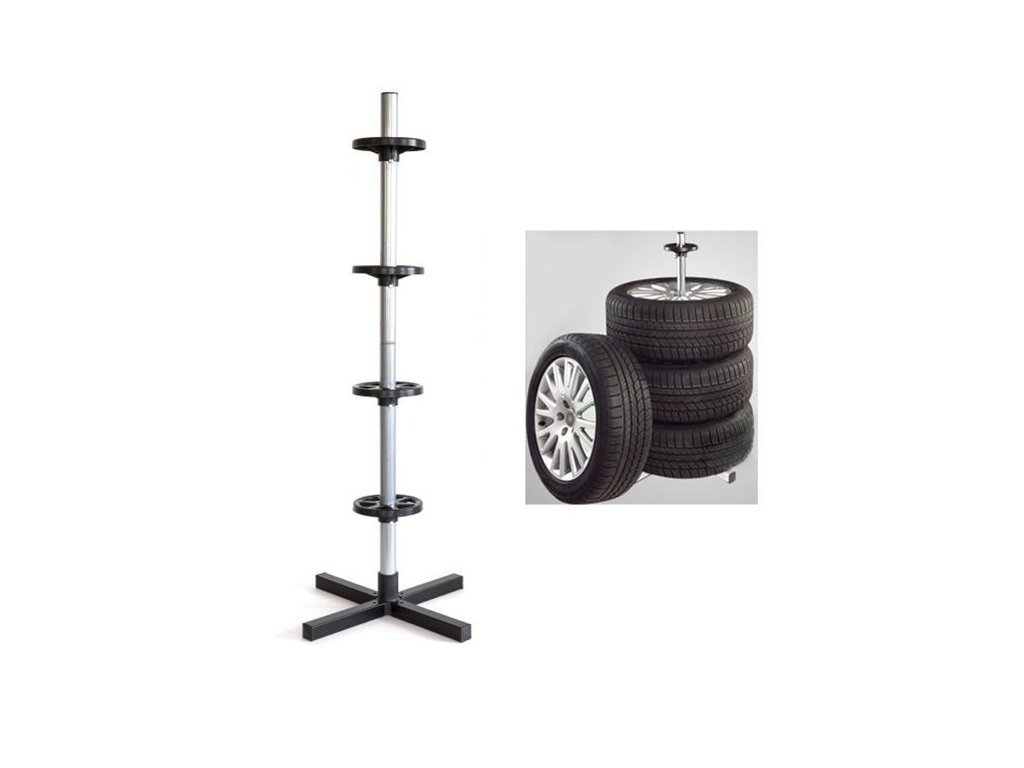 Držák disků kol, ideální pro uskladnění zimních či letních pneumatik. Držák zabírá jen velmi málo místa. Jednoduchá montáž, držák lze po použití opět jednoduše demontovat. Určeno pro 4 disky s pneumatikami o velikost 13“ - 17“ až do šířky 225 mm.Max. zatížení 100kg, hmotnost stojanu 2,7kg, celková výška 107cm.Dodatočné parametre