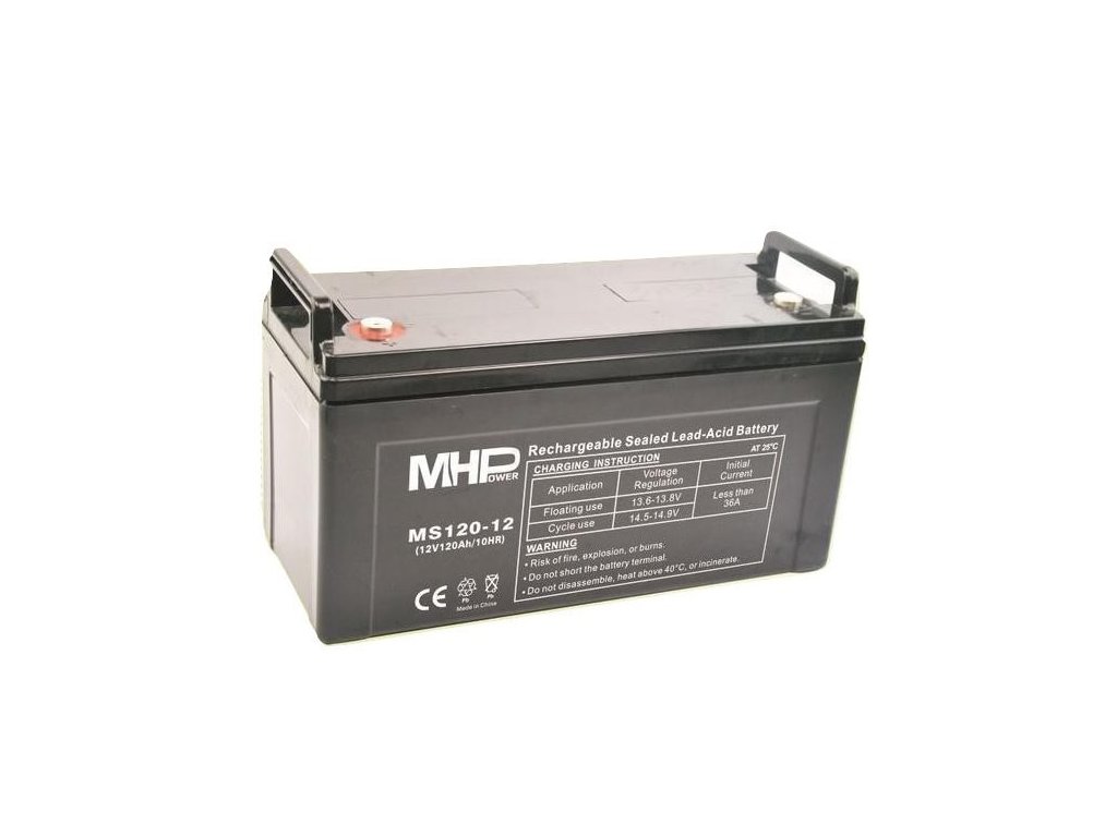MHPower MS120-12 olověný akumulátor - PRASKLÝ DRŽÁK, AGM 12V/120Ah, Terminál T2 - M8