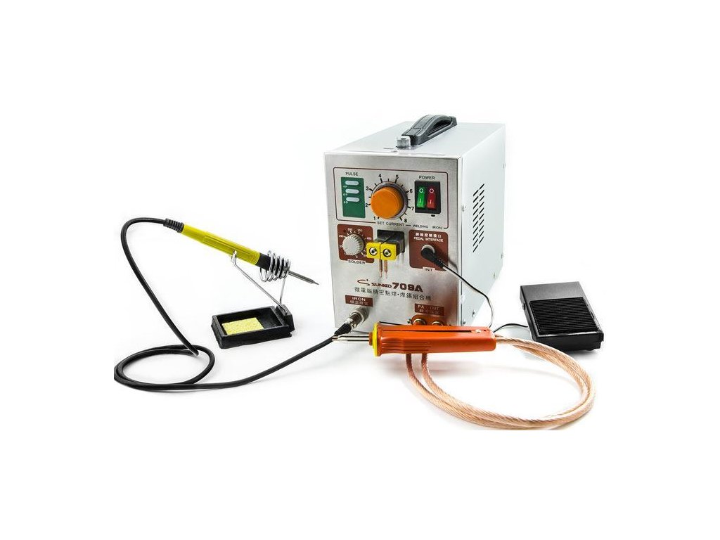 SUNKKO 709A je bodová svářečka pro bodové svařování akumulátorů do bateriových akupacků pomocí niklových plíšků. Svařovat lze pomocí dvou bodů v těle svářečky nebo s pomocí kleští. Součástí přístrojeje také mikropájka 50W s regulací teploty.**Specifikace:**