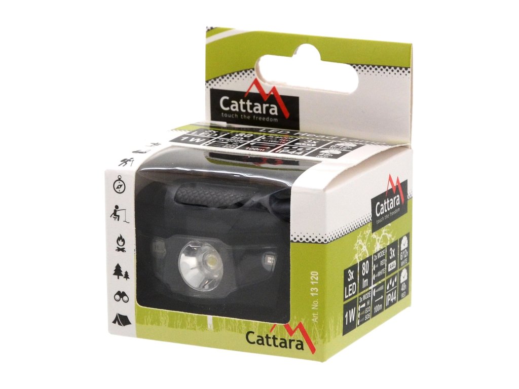 Standardní voděodolná čelovka, osazená třemi LED o výkonu 1 W se svítivostí 80 lm.
