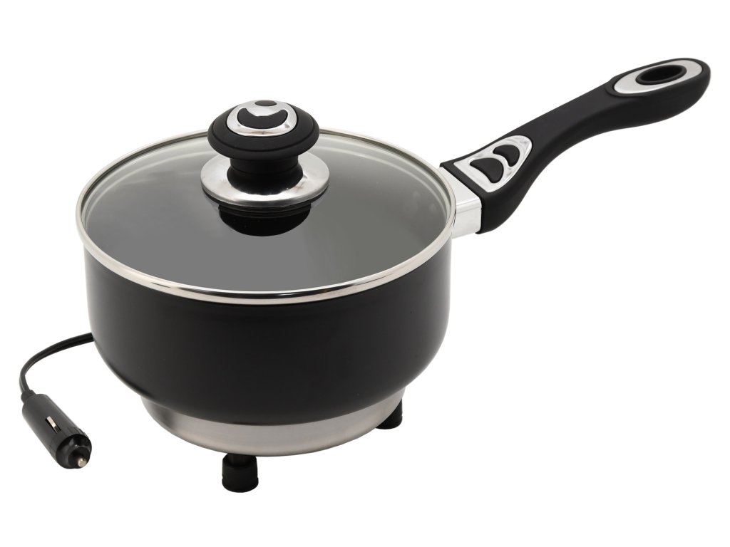 Napájení je řešeno zástrčkou do autozapalovače na 12V, pomocí kabelu délky 130 cm. Hrnec nabízí vysoký příkon 165W, pro ochranu zařízení je opatřen 20A pojistkou, kterou lze snadno vyměnit.