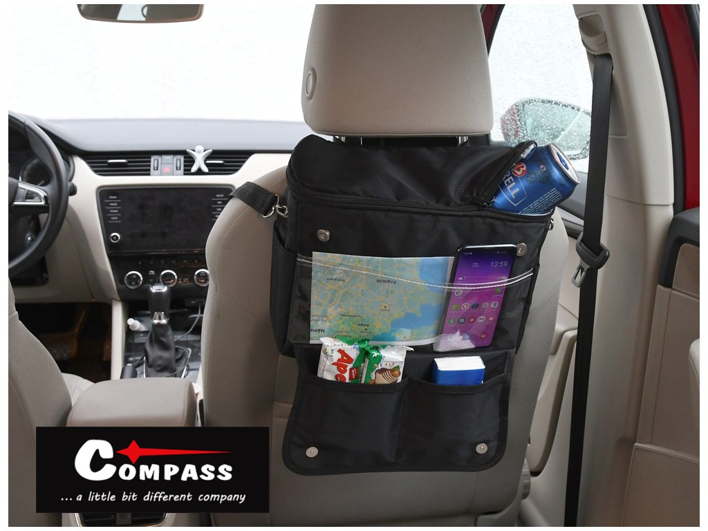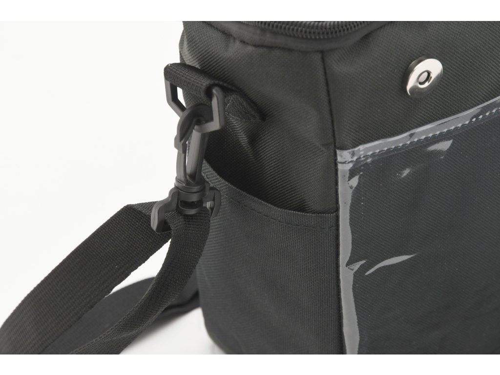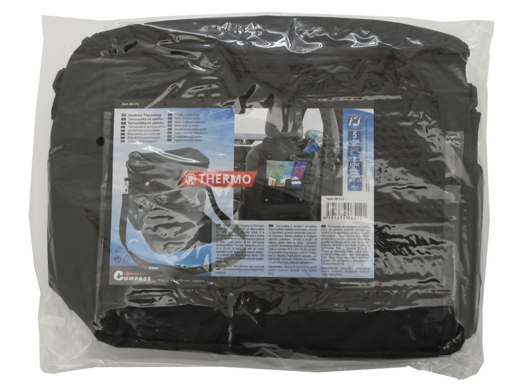 Termotaška k zavěšení na opěrku hlavy u přední sedačky automobilu, vhodná i k přenášení pomocí ramenního popruhu.