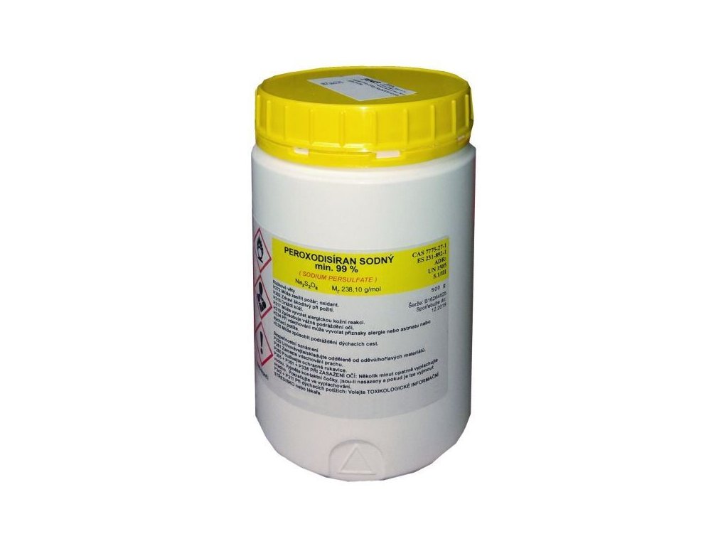 Příprava leptacího roztoku na DPS: 250g krystalů rozpustit za mírného míchání v jednom litru vody 45°C. Použitelnost roztoku až 8 týdnů. Doba leptání 10 až 15 minut. Vydatnost až 2m čtvereční.Na__2__S__2__O__8__- H272 Může zesílit požár.- H302 Zdraví škodlivý při použití.