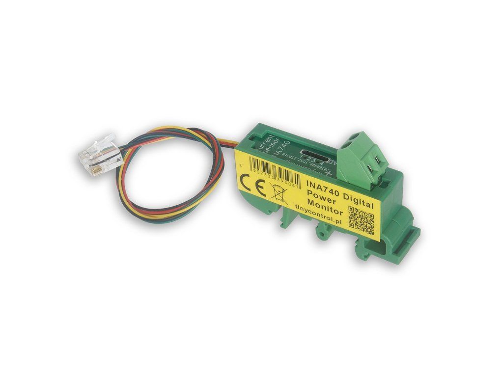 Tinycontrol INA740. Přesný digitální monitor napájení s integrovaným snímačem proudu a 16bitovým delta-sigma ADC převodníkem. INA740 je specializovaný senzor navržený pro přesné měření elektrických parametrů v průmyslových a IoT aplikacích. Zařízení dokáže měřit obousměrné proudy až ± 24 A (limit konektoru, čip samotný zvládá až ± 35 A) při podpoře společného napětí až 85 V. Díky vysoké přesnosti a širokému rozsahu měření je ideální pro monitorování spotřeby energie, diagnostiku systémů a optimalizaci výkonu. Senzor poskytuje komplexní měření včetně proudu, napětí sběrnice, teploty čipu, výkonu a spotřebované energie. Komunikace probíhá prostřednictvím I2C sběrnice a RJ konektor je kompatibilní se zařízeními tinycontrol, přičemž senzor je podporován kontrolérem LK4. - Obousměrné měření proudu v rozsahu ±2 4 A s vysokou přesností - Měření napětí v rozsahu 0–85 V pro širokou škálu aplikací - Integrovaný teplotní senzor s přesností ± 1,5 °C (při 25 °C) - 16bitové rozlišení pro vysoce přesná měření - Velmi nízký vnitřní odpor (shunt) pouhých 800 µ? minimalizuje ztráty - Přesnost měření výkonu ± 1,6 % a energie ± 2,1 % - 4polohový přepínač pro změnu I2C adresy umožňující provoz až 4 senzorů na jedné sběrnici - Montáž na standardní DIN lištu 35 mm pro snadnou instalaci Univerzální konektivita a integrace RJ konektor senzoru je kompatibilní se zařízeními Tinycontrol a senzor je podporován kontrolérem LK4. Pro integraci s jinými kontroléry (např. Arduino) je potřeba se seznámit s rozložením pinů RJ konektoru, které je popsáno např. v krátkém manuálu LK4. Flexibilní adresování I2C Deska senzoru je vybavena 4polohovým přepínačem, který umožňuje změnit I2C adresu. Díky tomu je možné provozovat až 4 senzory na jedné I2C sběrnici, což je funkce dostupná s kontrolérem LK4. Snadná instalace Senzor podporuje montáž na standardní 35mm DIN lištu, což usnadňuje instalaci v průmyslových rozvaděčích a řídicích systémech. Zařízení je kompatibilní s vodiči o průměru 0,5–2 mm (12–24 AWG) pro flexibilní zapojení. Technické specifikace: Rozsah měření proudu: ± 24 A (obousměrný) Rozsah měření napětí: 0–85 V Vnitřní odpor (shunt): 800 µ? Proudový offset: ± 62,5 mA (max.) Přesnost měření výkonu: ± 1,6 % (max.) Přesnost měření energie: ± 2,1 % (max.) Přesnost teplotního senzoru: ± 1,5 °C (max. při 25 °C) Rozlišení měření: 16bitové Napájecí napětí: 3,3 V Velikost proudového vodiče: 12–24 AWG (průměr 0,5–2 mm) Montáž na DIN lištu: ano (35 mm) Rozměry: 63 × 44 × 16 mm Délka kabelu: 27 cm Senzor by měl být připojen podle schématu, pro měření napětí (a samozřejmě výkonu a energie) musí být zem LK4 a zem zátěže společné! V případě izolovaného systému lze realizovat pouze měření proudu.Dodatočné parametre