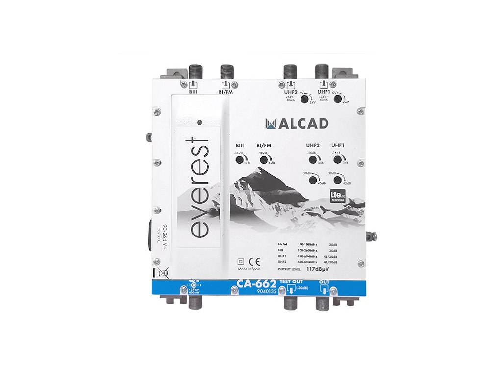 Zesilovač CA-662 je moderní domovní zesilovač pro pozemní analogový a digitální příjem TV/FM signálů s výstupem 117 dBµV s potlačením rušení způsobeného mobilním internetem v pásmech 5G LTE700.