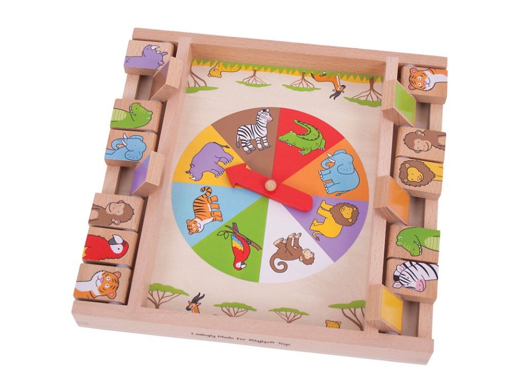 Tradiční hra v moderním Bigjigs Toys designu! Závody se soupeři. Který z vás dříve postupně zastaví ruletu na všech zvířátkách? První, komu se to podaří, je korunován vítězem! Zvířátka, na která vám ruleta již ukázala, si můžete označit překlopením jeho obrázku umístěném na okraji hry. Vyrobeno z kvalitních a zodpovědně získaných materiálů. Odpovídá současným evropským bezpečnostním normám. Hlavní vlastnosti: rozvíjí komunikační schopnostipomáhá při rozpoznávání barev a tvarůvyrobeno z udržitelného dřevaDodatočné parametre
