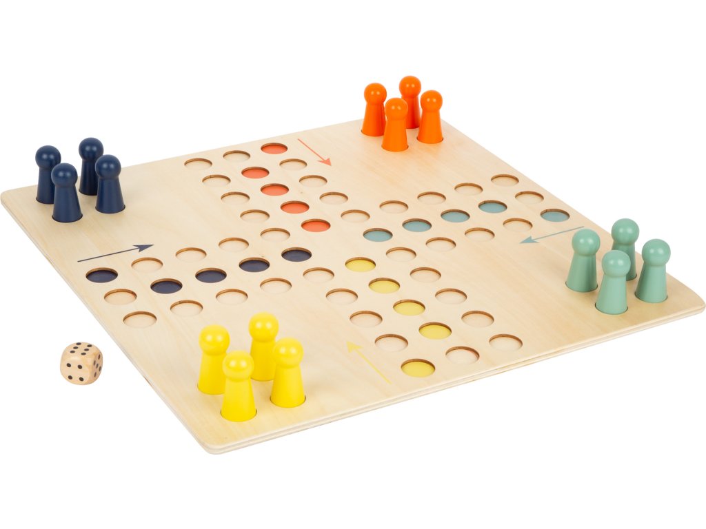 Člověče, nezlob se v extra velkém formátu! Tato klasická dřevěná hra, ve které musíte jako první dostat všechny figurky do domečku je velmi napínavá. Herní deska byla vytvořena hlavně pro hráče s malýma, třesoucíma se rukama. Kostka a 16 figurek jsou zabalené v textilním pytlíku. Figurky jsou oranžové, žluté, modře a mátově zelené, můžete si tak vybrat svou oblíbenou barvu. Děti se také naučí počítat hravým způsobem.Dodatočné parametre