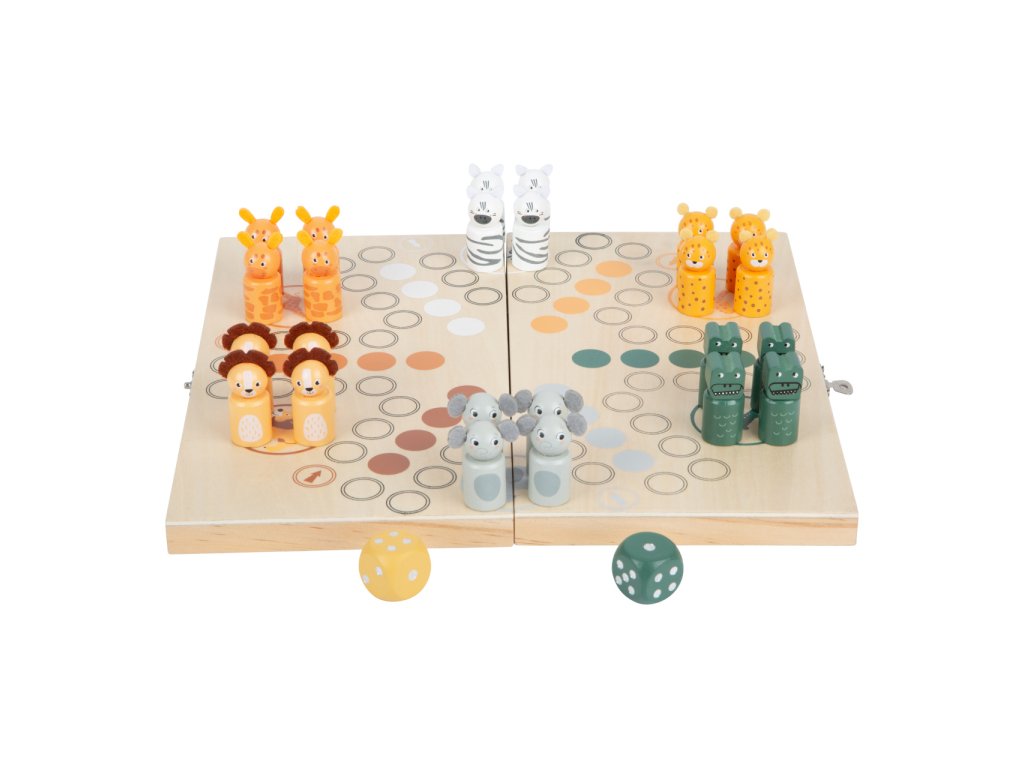 Skvělá zábava až pro 6 hráčů každého věku! V této klasické hře vyrobené ze dřeva musíte dostat svá zvířátka ze savany do domečku. Zebra, žirafa, krokodýl, slon, leopard a lev vypadají skoro jako praví. Tyto figurky jsou vhodné pro děti, jsou dřevěné a mají plyšové prvky. Herní deska je praktická, po složení se z ní opět stane úložný box. Dvě herní kostky vám ukáží, o kolik polí se můžete posunout. Klasická stolní hra v trendy designu, která děti naučí počítat, poznávat barvy a zvířata. Děti se také naučí prohrávat. Ideální také na cesty. Hlavní vlastnosti: pro 2–6 hráčůherní deska, 24 figurek a 2 kostkypraktické baleníDodatočné parametre