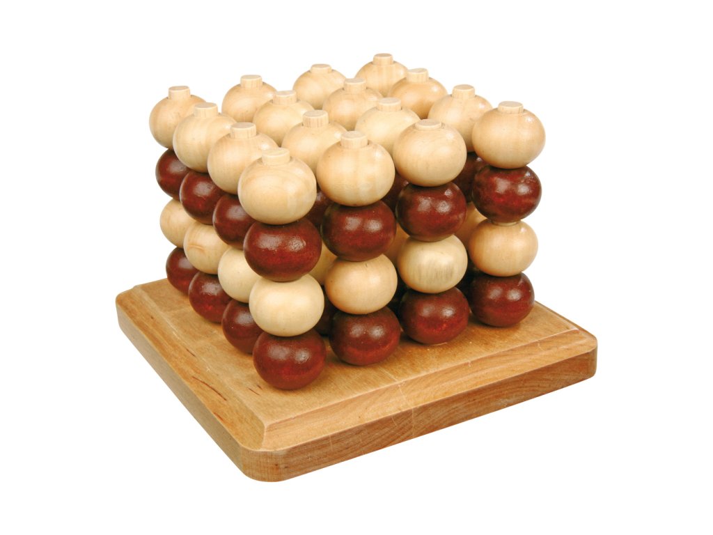 3D piškvorky je logická hra pro 2 hráče, všechny věkových kategorií. Hra obsahuje 64 dřevěných kuliček 32 bílých a 32 hnědých. Cílem této hry je zabránit, aby protihráč umístil 4 kameny do řady vedle sebe na jedné úrovni anebo, a to už je trochu těžší, na všech úrovních. Hráč, který jako první umístí 4 žetony horizontálně, vertikálně nebo diagonálně, hru vyhrává. Při hře musejí hráči uplatnit koncentraci a obratnost Hlavní vlastnosti: podporuje prostorovou představivost a logické myšlenískvělá hra pro dospělé i dětiDodatočné parametre