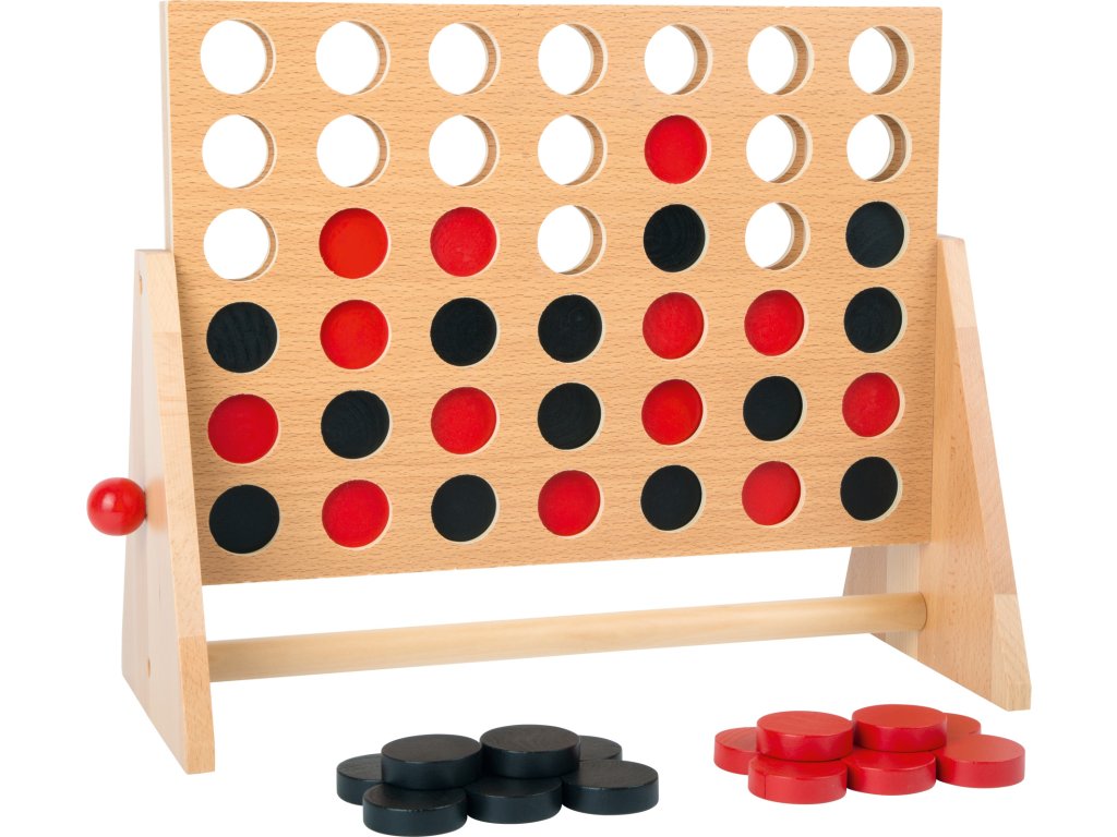 Klasická hra pro dva hráče ve velké verzi. Strategická hra pro mladé i staré hravě trénuje logické myšlení. Hráči se snaží dostat 4 kameny za sebe a to horizontálně, vertikálně nebo diagonálně. Komu se to povede?! Když hra skončí, stačí dřevěný rám otočit a kameny vysypat. A můžete hrát znovu!Dodatočné parametre