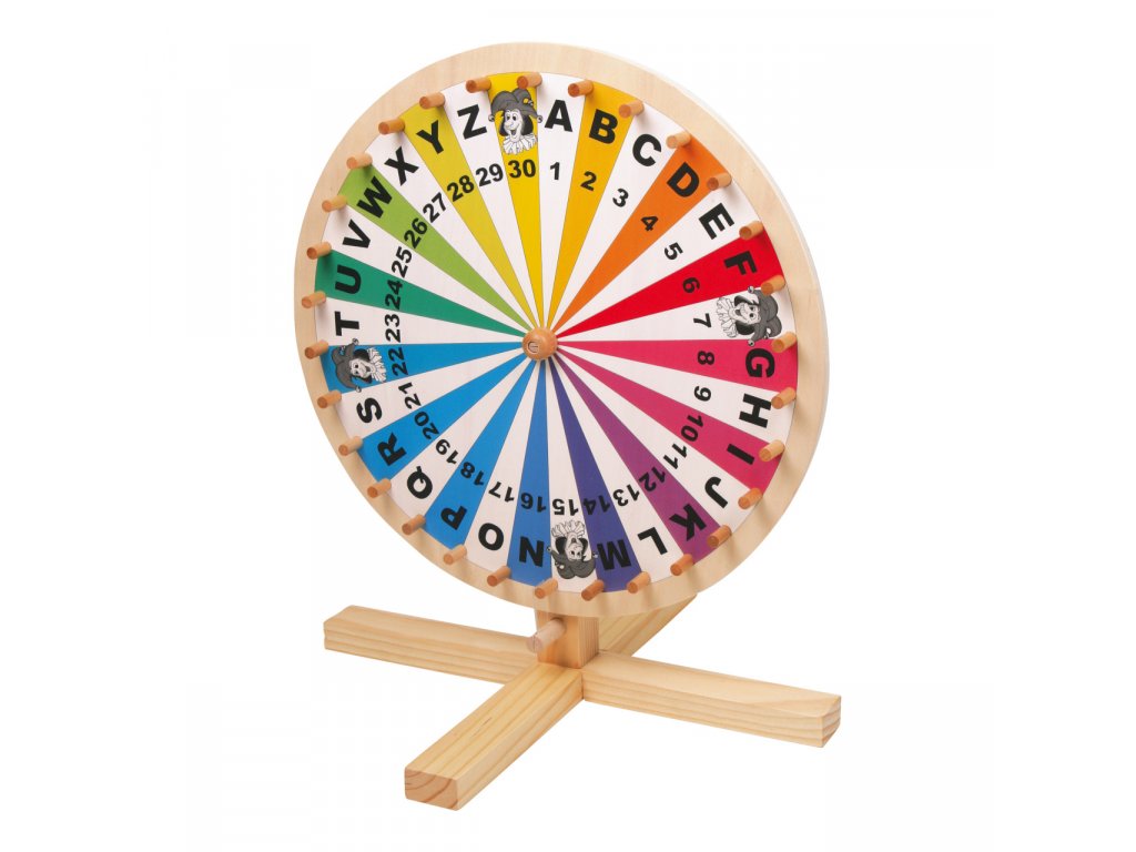 Toto kolo štěstí je skvělým doplňkem pro hry jako např. loterie, slovní hry nebo vymyšlené hry s figurkami od 1 do 30, písmeny od A do Z a také 4 žolíky. Hlavní vlastnosti: vhodné pro figurky s čísly od 1-30, písmena od A do Z, také 4 žolíky masivní dřevěný stojanzaručená zábava při hraníDodatočné parametre