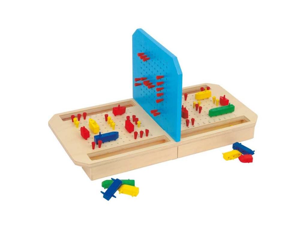 Zásah – ke dnu! Hra Potápění lodí je zcela vyrobena ze dřeva, nemá jenom nasouvací typy lodí, nýbrž i odpovídající „bomby“ - malé kužely, které se zasunou do hrací desky (nebo na odpovídající loď) na místě, které uvede protivník. Absolutní klasika s napětím přes mnoho hodin.Dodatočné parametre