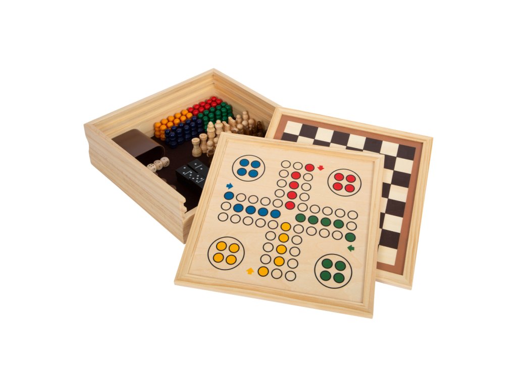 Soubor her pro celou rodinu se všemi důležitými klasickými hrami a oblíbenými společenskými hrami. Ať už domino, ludo, šachy, dáma, mlýn, Halma & Co. Tato kolekce her s hracími deskami vyrobenými z robustního dřeva obsahuje vše, co děti i rodiče potřebují pro zábavné herní odpoledne. V pevné dřevěné krabici s plstěným dnem se nic neztratí. Hlavní vlastnosti: dlouhotrvající zábavavše má své místo v dřevěné krabicivysoce kvalitní materiálynávody ke hrámDodatočné parametre
