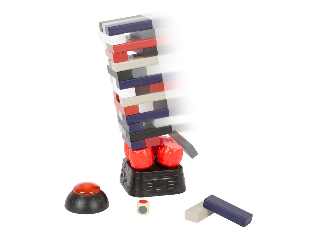 Extrémní vratká věž! Rychlost je v této velmi důležitá. Každý hráč hodí barvou a poté vytáhne odpovídající kámen z vratké věže, zatímco časovač odpočítává. Ale pozor: Jakmile vyprší čas a bzučák nestisknete včas, základna začne vibrovat a věž se převrhne. úroveň obtížnosti lze měnit dvěma různými nastaveními odpočítávacího časovače. Lze také hrát jako klasická vratká věž bez podstavce a časovače!Vzrušení, zábava a akce pro malé i velké! Hlavní vlastnosti: Trénuje jemnou motoriku a koncentraci2 varianty obtížnostiDodatočné parametre
