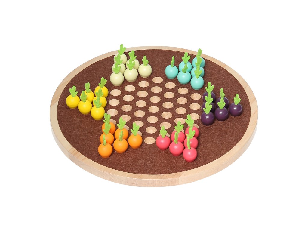 Podaří se Vám přemístit svou zeleninu na druhou stranu dříve než ostatním? Tradiční hra pro všechny věkové kategorie svým poutavým zpracováním v pestrých barvách vzbudí pozornost a stane se ozdobou pokojů nebo kluboven. Je vyrobena z odolného masivního dřeva s doplňky z plsti. Součástí balení je také praktický bavlněný sáček k uložení figurek. Hlavní vlastnosti: hrací deska a 36 figurekpro 2, 4 nebo 6 hráčůjedinečný design a zpracování Zkrácený návod hry:Čínská dáma (varianta halmy) jako zeleninová zahrádka. Cílem hry je dostat svých 6 figurek do protilehlého cípu hvězdy jako první. Vždy se začíná v cípu, který je nejdál od hráče – protilehlého k němu, figurky postupně posouvá směrem k sobě, do protilehlého (k sobě nejbližšího) cípu hvězdy. Při 2 nebo 4 hráčích zůstanou některé cípy volné. Figurky nelze brát. Vítězí hráč, který jako první dostane všech 6 figurek na cíp protilehlý startovnímu cípu.Pohyby figurek:Dopředu nebo dozadu o 1 pole v jakémkoliv směru. Mohou přeskakovat ostatní figurky několikrát za sebou (jen sousední k té, kterou pohybujete). Mezi přeskoky můžete měnit směr. Figurky nelze na protilehlý cíp hvězdy posunout, tento přesun je povolen pouze při přeskakování, tzn. figurka musí do cípu doskákat. Dokumentace: návod ke hře halma Zeleninová zahrada (CZ)návod ke hře halma Zeleninová zahrada (SK)Dodatočné parametre