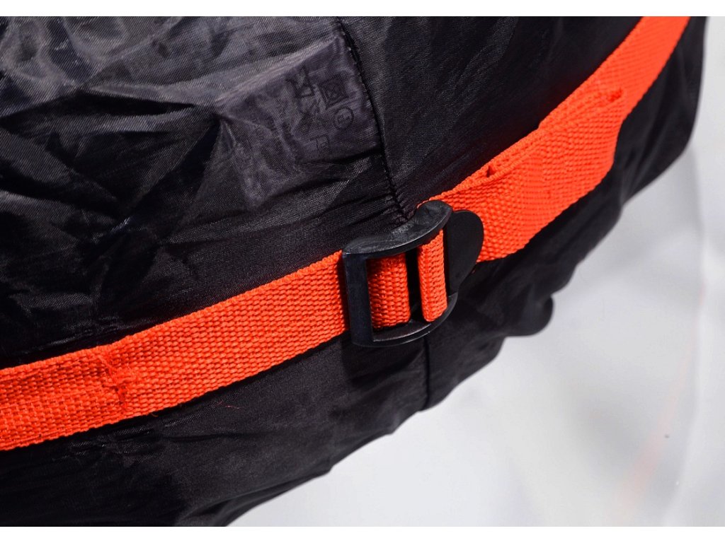 Návlek se nasune na pneumatiku a pomocí popruhu se sponou se důkladně upne po obvodu. Po stranách jsou umístěny gumové upínáky pro dokonalé obepnutí pneumatik.