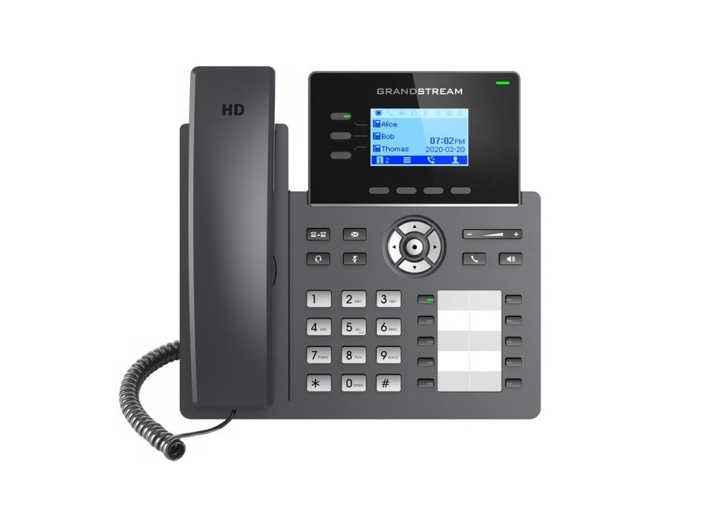 Součástí nové Grandstream GRP řady IP telefonů je i GRP2604P. Jde o základní třílinkový model navržený pro hromadné nasazení a snadný management. Vyznačuje se elegantním designem a sadou funkcí nové generace, včetně 5 cestné audiokonference pro maximální produktivitu, integrovaného PoE napájení, HD audio v reproduktoru i sluchátku umožňuje uživatelům komunikovat v maximální srozumitelnosti a kvalitě, 10 BLF tlačítek pro rychlé volby, podporou EHS pro náhlavní soupravy Plantronics, Jabra a Sennheiser , vícejazyčnou lokalizaci včetně české a slovenské. Řada GRP zahrnuje funkce zabezpečení na enterprise úrovni, včetně zabezpečeného bootování, 2 firmware images a šifrovaného úložiště dat. Celou řadu GRP lze jednoduše vzdáleně spravovat a konfigurovat free nástrojem Grandstream’s Device Management System (GDMS), jenž poskytuje centralizované rozhraní pro konfiguraci, provisioning, správu a monitorování nasazených koncových bodů Grandstream. GRP2604P je postavený pro potřeby pracovníků ať už jsou na pracovišti nebo na home office a je navržený pro snadné nasazení v podnicích, poskytovatelích služeb a na dalších velkoobjemových trzích a nabízí snadno použitelný a snadno nasaditelný hlasový koncový bod. Hlavní funkce: 6 SIP účty, 3 linky, až 3 hovory 10 BLF tlačítek pro rychlé volby, štítek lze vytvořit a vytisknout přímo z WebGUI telefonu viz. video návod. Jednoduše sestavitelné 5cestné audiokonference Dva switched 10/100/1000 Mb/s ethernetové porty Plně duplexní hlasitý reproduktor se HD zvukem pro maximalizaci kvalitu a čistotu zvuku Noise shield technologií pro minimalizaci hluku v pozadí Umožňuje PoE napájení telefonu Podpora Electronic Hook Switch (EHS) pro náhlavní soupravy Plantronics, Jabra a Sennheiser Ochrana na enterprise úrovni, včetně zabezpečeného bootování, 2 firmware images a šifrovaného úložiště dat GDMS online správa a provisioning zařízení Vyměnitelný čelní panel pro snadné přizpůsobení loga Adaptér v balení Ne Audiokonference 5 cestná konference Bluetooth Ne České menu Ano Displej rozlišení 132 x 64 Displej typ grafický, podsvícený Displej velikost (palce) 2.48" Ethernetové porty 2 x RJ45 10/100/1000 Mbps HDMI Ne Operační systém Linux Počet SIP účtů 6 PoE napájení Ano Rychlost LAN 10/100/1000 Mbps Vyměnitelná čelní deska Ano Wifi Ne Zavěšení na zeď VolitelnéDodatočné parametre
