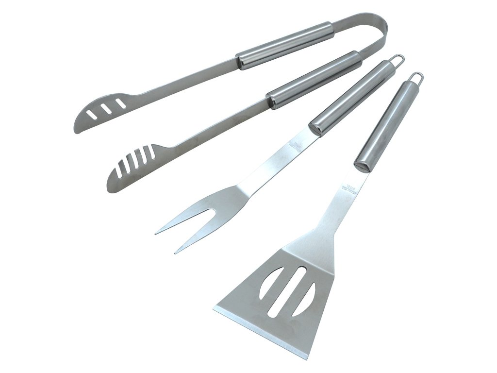 Kleště jsou speciálně tvarovány pro jistý úchop nejrůznějších pokrmů a mají délku 35 cm. Dvouzubá vidlička s délkou 32 cm. Obracečka délky 33 cm s precizně zabroušenou hranou, a odtokovými otvory pro otáčení masitých ale i jiných pokrmů.
