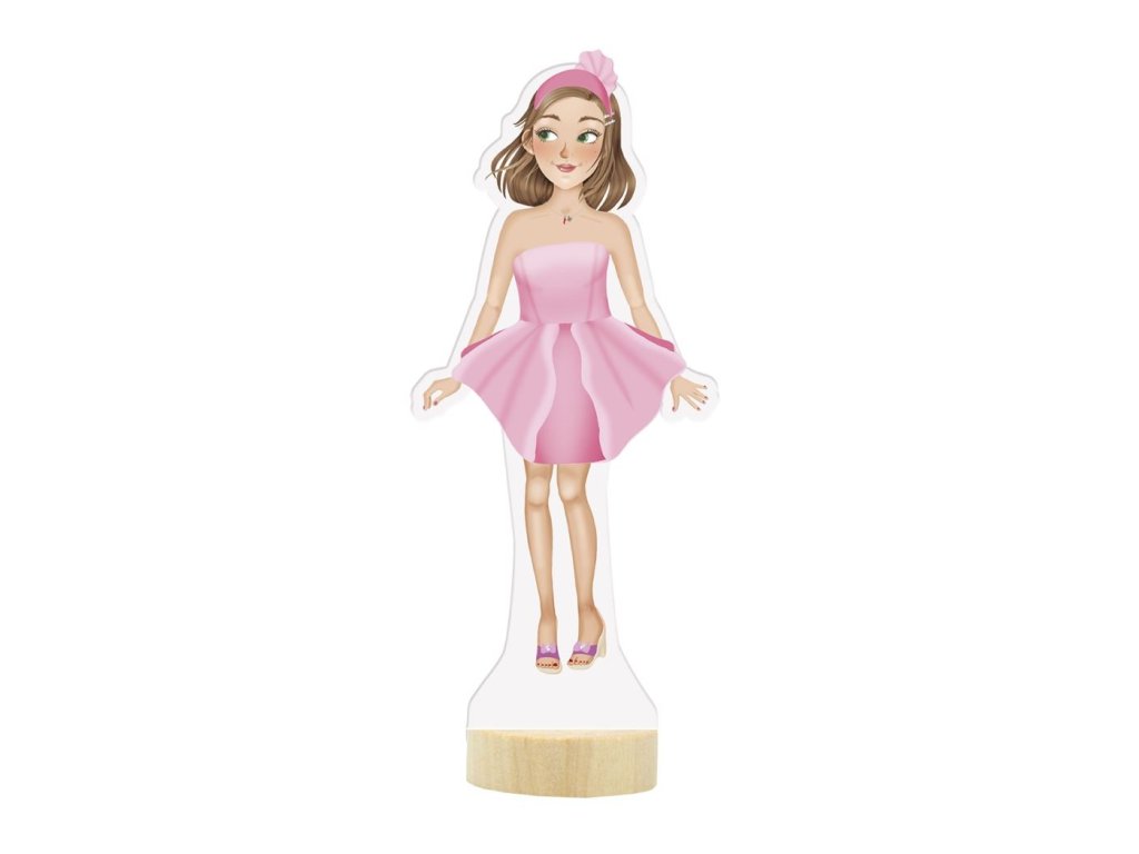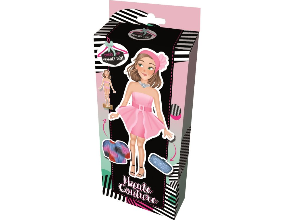 Balení obsahuje oblékací postavičku, 3 archy magnetických částí oblečení, bot a doplňků a dřevěný podstavec.