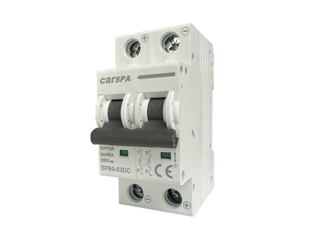 Jistič DC 10A 2P Carspa SPB9-63DC 2-pólový 6kA na DIN lištu