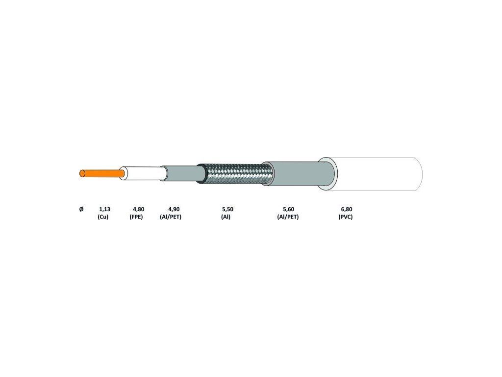 Vnútorný vodič: meď (CU), o 1,13 ± 0,02 mm