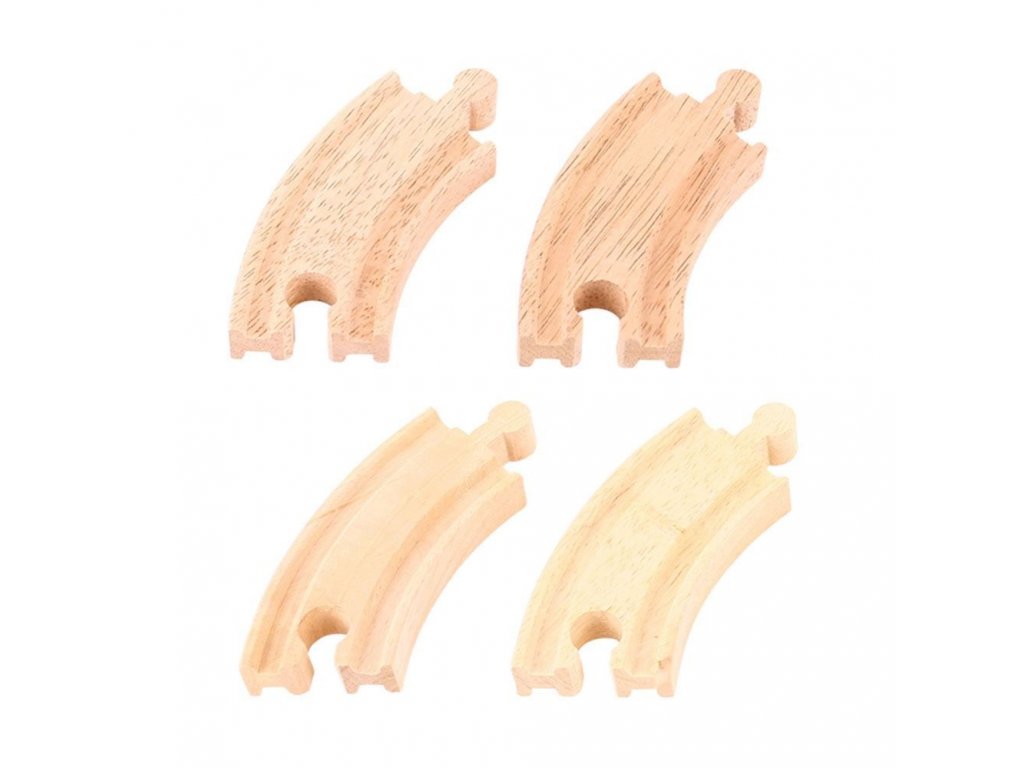 Toto balení obsahuje 4 krátké zatáčky z našeho BigJigs železničního sortimentu. Vyrobeny jsou z kvalitního tvrdého dřeva a jsou kompatibilní s dalšími dřevěnými železničními systémy našich vláčkodráh a tím se stanou skvělým přírustkem do vaší sbírky železnic. Hlavní vlastnosti: Vláčkodráhy a jejich příslušenství značky Bigjigs Rail je možno kombinovat se všemi dalšími dřevěnými vláčkodráhami na trhu.Vyrobeno z kvalitních a zodpovědně získaných přírodních materiálů.Odpovídá současným evropským bezpečnostním normám.Podporuje představivost, obratnost a koordinaci.Dodatočné parametre