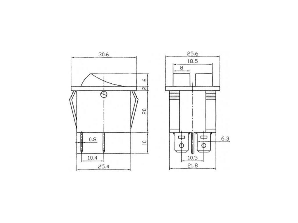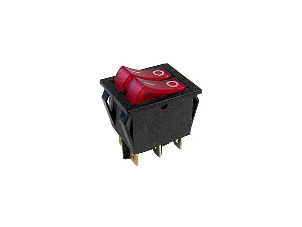 Vypínač kolébkový IRS-2101-1C, 2xOFF-ON 250V/15A červený, prosvětlený