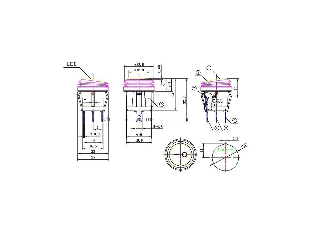 Vypínač kolébkový KCD1-5-101NW, OFF-ON 1pol.250V/6A oranžový vodotěsný