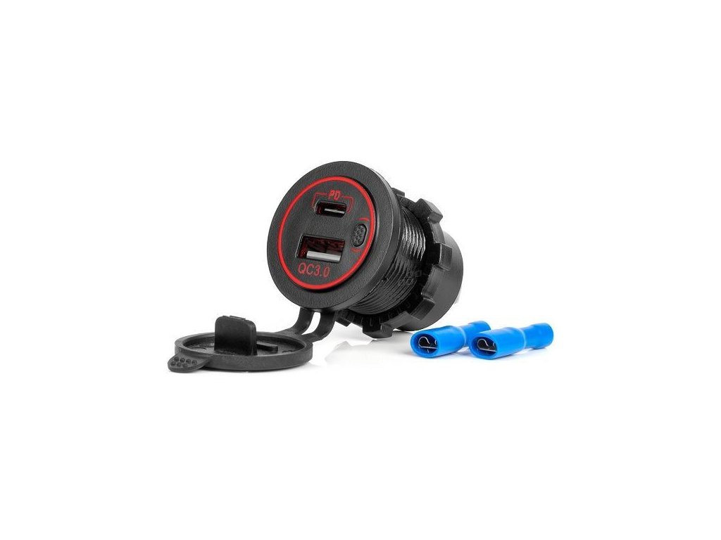 Napájecí zdířka voděodolná USB + USB-C QC3.0 12V 24V AMIO