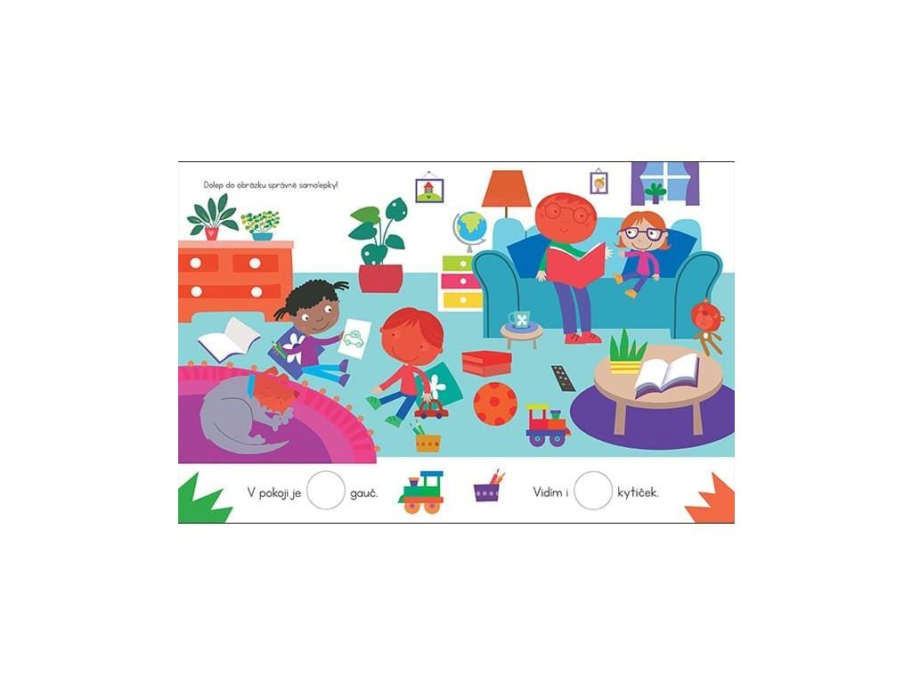 Samolepková knížka obsahuje 24 stran veselých obrázků a 150 opravdu velkých samolepek pro rozvoj jemné motoriky.