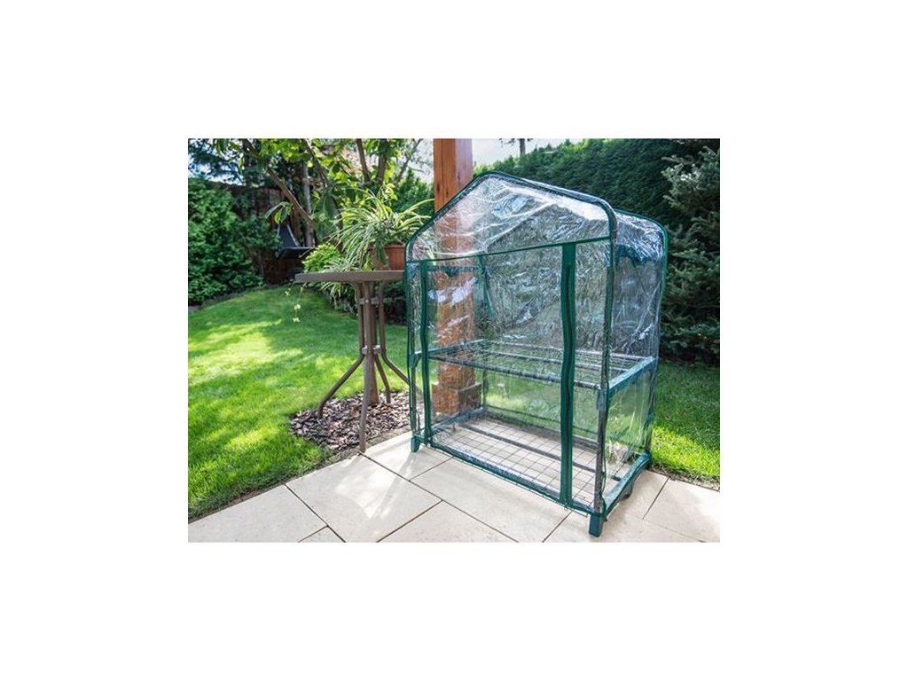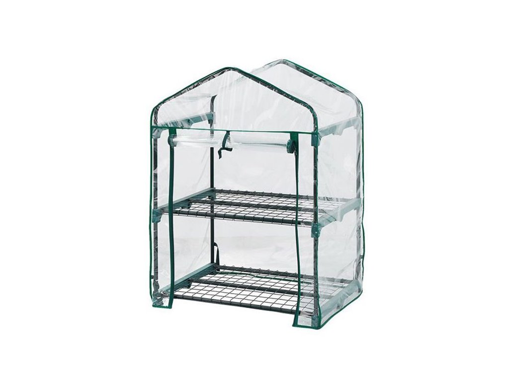 NEO TOOLS Skleník, PVC fólie, kovová konstrukce, 69x49x95 cm<BR/><BR/>Pro použití doma i mimo dům skleník s kovovou konstrukcí a PVC fólií značky NEO. Vyznačuje se rozměry 69 x 49 x 95 cm. Má dvě prakticképolice, které vám umožní vměstnat více rostlin do podobného prostoru. Skleník nabízí výborné podmínky pro růst bylinek, malých sazenic zeleniny a ovoce. Zapíná se pohodlně na zip - navíc má i možnostsrolování přední stěny. Skleník je skládací, takže nezabere mnoho místa, když se nepoužívá. Má stabilní konstrukci a odolný kovový rám s práškovým nástřikem.<BR/><BR/>Využití<BR/><BR/>- pro použití doma i mimo domov,<BR/>- poskytuje vynikající podmínky pro růst rostlin,<BR/>- pro zahradní nadšence, kteří nemají přístup na zahradu,<BR/>- pro použití na balkoně, terase nebo ve větší kuchyni.<BR/><BR/>Vlastnosti<BR/><BR/>- domácí skleník,<BR/>- 2 praktické police,<BR/>- zavírání na zip,<BR/>- skládací,<BR/>- možnost srolování přední části skleníku,<BR/>- stabilní,<BR/>- odolná konstrukce.<BR/><BR/>Materiál<BR/><BR/>- PVC fólie,<BR/>- kovová konstrukce s práškovým nástřikem.<BR/><BR/>Rozměry<BR/><BR/>- v rozloženém stavu: 69 x 49 x 95 cm,<BR/>- přední otevírání: 49 x 71 cm.Dodatočné parametre