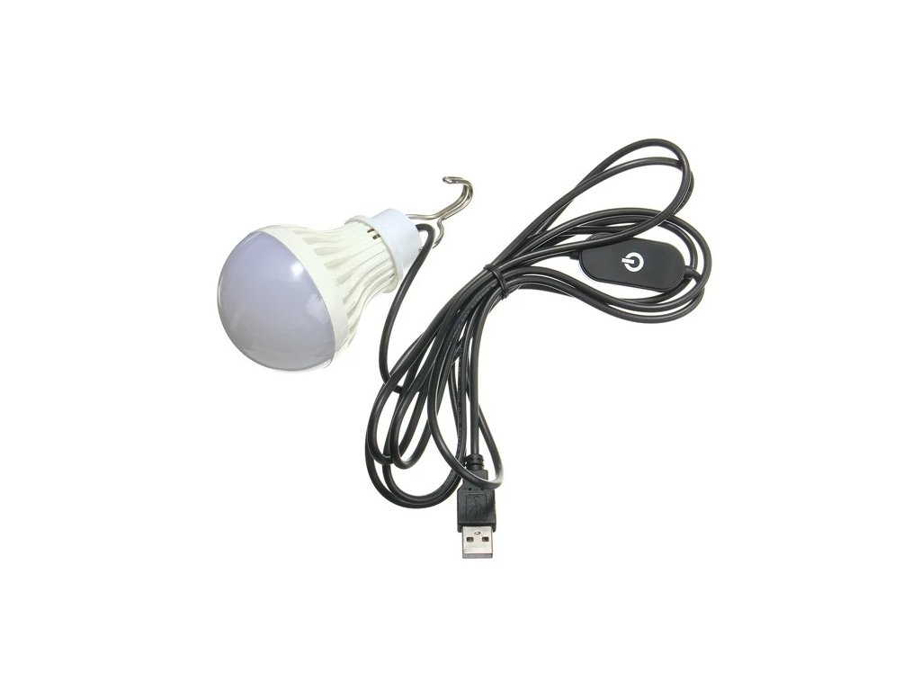 Tato přenosná USB LED žárovka 5V je ideální pro kempování, rybáře, vhodné pro chaty, karavany, lodě nebo pro jiné nouzové použití. Lehké a přenosné. Lze napájet jakýmkoli zdrojem USB, jako je powerbanka, počítač, notebook nebo s adaptérem nabíječky mobilního telefonu. Technické údaje: Vstupní napětí: DC 5 V Svítidlo závěsné 5V/5W Svítí jako 40W žárovka 10x LED 5730 Rozměry: prům. 60 mm x 90 mm Světelný tok: 350lm Rozptyl světla 270 stupňů Barevná teplota: 4000K, bílá Délka kabelu: 230 cm Materiál: plast, háček kov Vodotěsné: NeDodatočné parametre