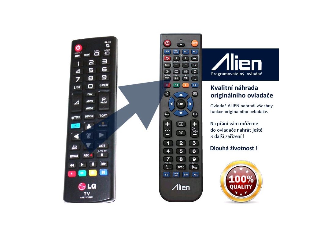 Ovladač obdržíte naprogramovaný na vaše zařízení. ALIEN nahrazuje všechny funkce originálního ovladače.