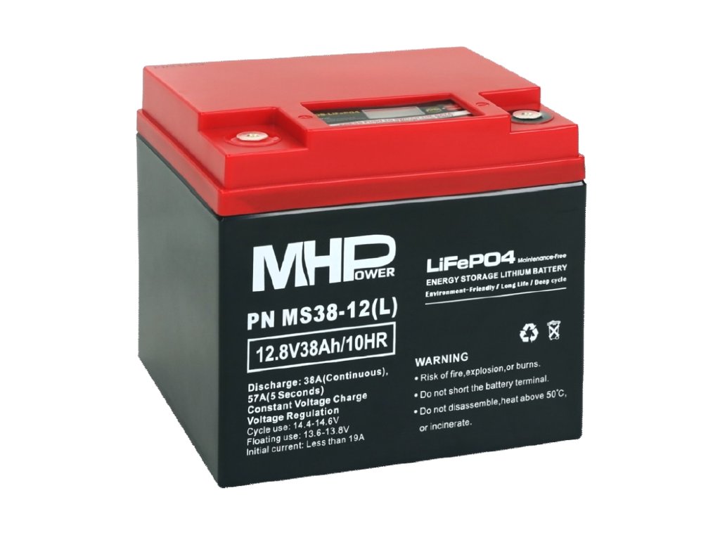 Lithium-železo-fosfátová baterie (LiFePO4) se vyznačuje výjimečnou životností, kapacitní stabilitou a rychlostí nabíjení. Jedna z hlavních předností je velmi nízká hmotnost, zhruba 30% hmotnosti oproti olověným bateriím. Baterie LiFePO4 si zachovají více než 80% své kapacity i po 2 000 nabíjecích cyklech. Díky nízkému samovybíjení bude baterie plně funkční i po jednom roce nepoužívání. Díky své vysoké životnosti, nízké hmotnosti a nabíjecím parametrům se baterie používají v rekreačních vozidlech, karavanech, lodích nebo při napájení domů v kombinaci s fotovoltaikou. LiFePO4 baterie MHPower jsou osazeny integrovaným BMS (Battery Management System), který řídí procesy vybíjení a nabíjení. Pokud se během nabíjení nebo vybíjení objeví nějaký problém, BMS okamžitě zasáhne a upraví parametry nabíjení/vybíjení nebo jej zcela přeruší. Není tedy nutná žádná dodatečná BMS. Naše lithiové baterie MHPower jsme nechali zátěžovými testy otestovat na Elektrotechnické fakultě ČVUT v Praze, kde se potvrdila jejich neuvěřitelná robustnost a stabilita. Využitelná kapacita těchto baterií je minimálně 94%. Samovybíjení pouze kolem 2-3% kapacity za rok! Není tedy nutné pravidelně před a po sezoně baterii dobíjet. Bezpečnost: LiFePO4 mají extrémně stabilní chemické složení a jsou bezpečné. LiFePO4 jsou NEHOŘLAVÉ! Nedojde k explozi nebo vzplanutí při nárazu v případě přebití nebo zkratu. Klíčové vlastnosti - Maximální nabíjecí proud: 38A - Maximální vybíjecí proud: 38A - Kapacita baterie: 38Ah - Stupeň krytí: IP55 - Počet provozních cyklů: 3000 až 9600 - LED displej: ANO Fyzické charakteristiky Provozní teplota [°C]: 0 až 60 Hmotnost [kg]: 4,5 Šířka [mm]: 197 Výška [mm]: 172 Výška s konektory [mm]: 172 Hloubka [mm]: 165 Informace k produktu: LiFePO4 akumulátory jsou typem lithium-iontových baterií, které mají mnoho výhod, jako je vysoká kapacita, dlouhá životnost, bezpečnost a odolnost. Nicméně, stejně jako ostatní lithium-iontové baterie, mají také některé nevýhody, mezi které patří snížený výkon při nízkých teplotách. Při záporných teplotách nebo při mrazu dochází k několika nepříznivým jevům, které ovlivňují funkci LiFePO4 akumulátorů. Mezi ně patří: • Zpomalení iontové difúze v elektrolytu a elektrodách. Tím se snižuje rychlost chemických reakcí, které generují elektrický proud. To znamená, že baterie má nižší kapacitu a výkon při vybíjení a nižší účinnost při nabíjení. • Zvýšení vnitřního odporu baterie. To způsobuje ztrátu energie ve formě tepla a snižuje napětí baterie. To omezuje maximální proud, který lze z baterie odebírat nebo do ní dodávat. • Riziko poškození baterie. Pokud je baterie nabíjena při teplotách pod 0 °C, může dojít k tvorbě litiových dendritů na anodě. To jsou ostré krystaly lithia, které mohou propíchnout separátor mezi elektrodami a způsobit zkrat nebo požár. Proto je doporučeno nabíjet LiFePO4 akumulátory pouze při teplotách nad 0 °C. Z těchto důvodů je vhodné provozovat LiFePO4 akumulátory v teplotním rozmezí od 0 °C do 60 °C, aby se zajistil optimální výkon a životnost. Při nižších teplotách je nutné chránit baterii před mrazem a nabíjet ji opatrně.Dodatočné parametre