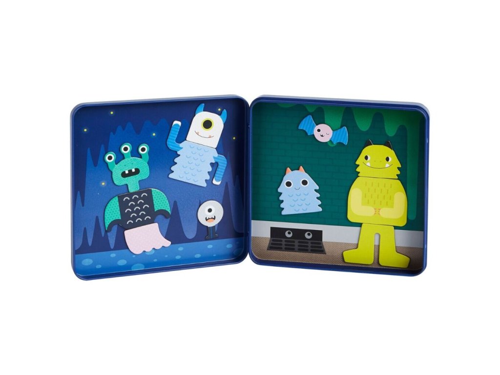 Video je pouze ilustrační, zobrazuje příbuzný produkt. Poškozený obal. Promáčknutá kovová krabička, která slouží jako magnetická tabulka. Stavějte a kombinujte roztomilé ilustrované příšery do různých scén. K dispozici je řada magnetických částí těl, které se scénami ve vnitřních prostorách odolné kovové krabičky tvoří praktickou sadu na cesty. Hra nabízí až 100 možných kombinací nabízejících velký prostor vlastní fantazii. Hlavní vlastnosti: 27 dílků, 2 pozadí praktické baleníDiskusia