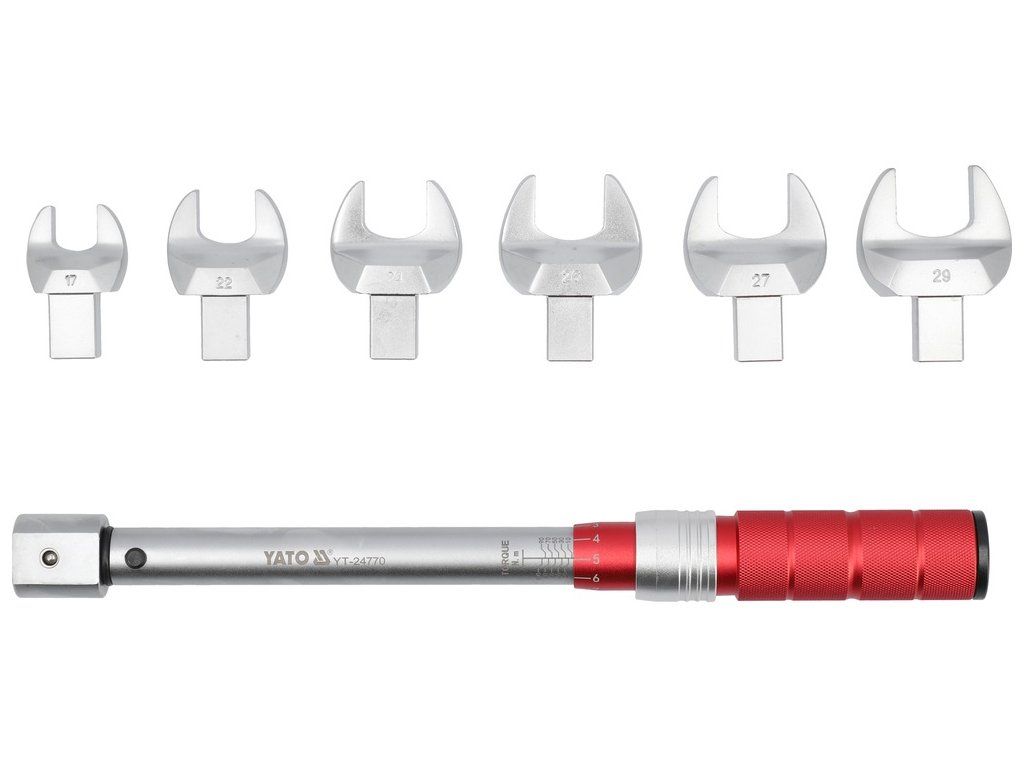 Praktická sada momentových klíčů YATO s vyměnitelnými hlavicemi pro klimatizační systémy a chladicí zařízení.