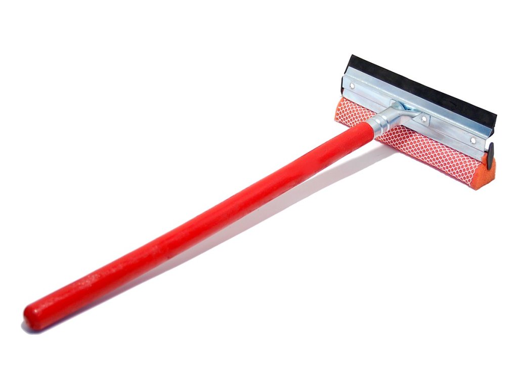 Praktická stěrka s pryžovým břitem a zabudovanou houbou, dřevěná rukojeť. Šířka 20cm, délka 43 cm, barva červená. Díky své robustní konstrukci je vhodná i k čerpacím stanicím.