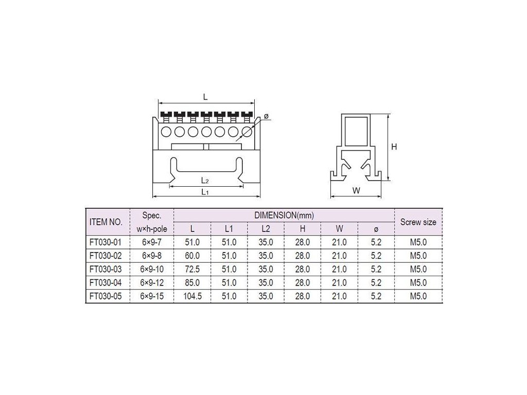 Nulovací můstek na DIN lištu FT030 12pólů modrý
