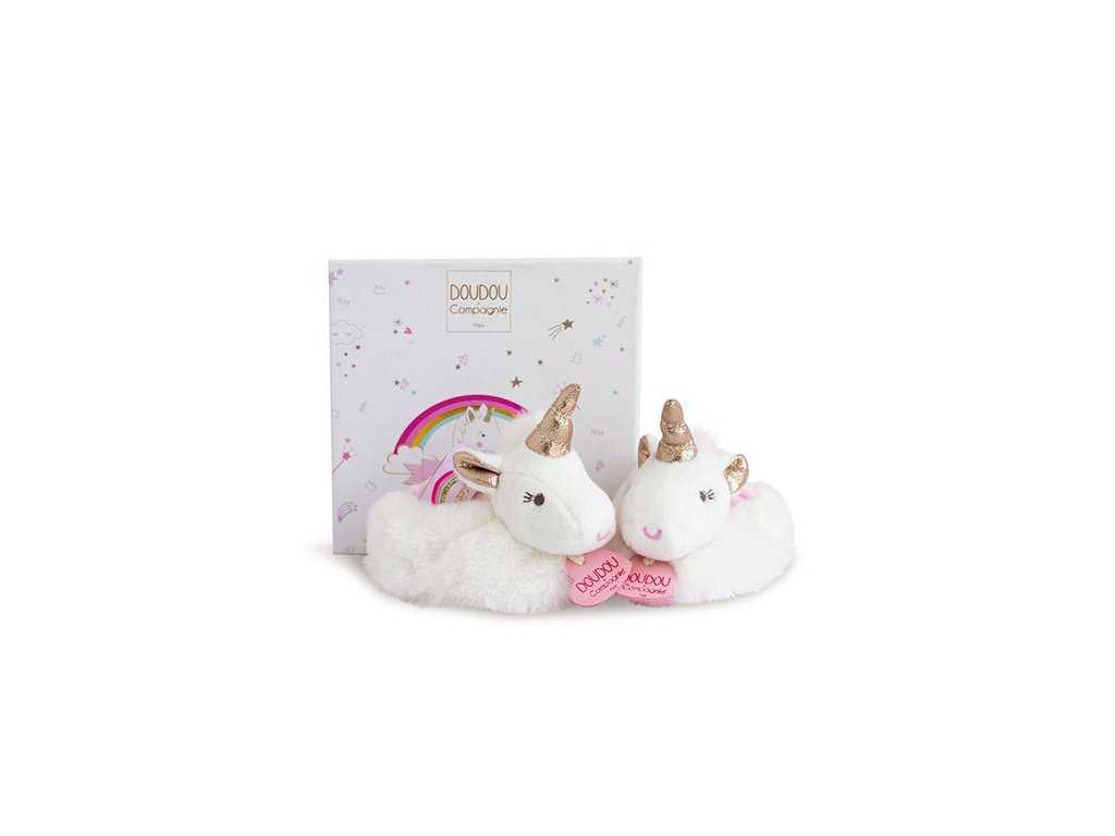 Doudou Dárková sada - Sada botiček s chrastítky jednorožec 0-6 měsíců