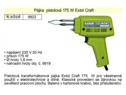 Pistole pájecí s regulací teploty,transformátorová, 200W EXTOL, 889450