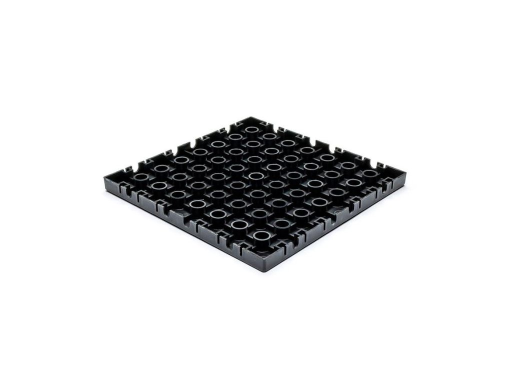 Toto zboží je na objednávku, doba expedice cca 7dníZákladní deska 250x250x16mm je elementárním prvkem plastového podlahového systému. Dlaždice GripTil je vyrobena z plastového granulátu a dodává se ve tvrdém Hard a měkkém Standard provedení. Povrch dlaždice je děrovaný, spodní strana je žebrovaná a propojená kanály, které zajišťují rychlý a trvalý odvod vody pod povrchem plastové podlahy. Z další charakteristiky je možné jmenovat tlumení vibrací,protiskluzové a protihlukové vlastnosti a snížení prašnosti. Plastové desky jsou odolné vůči většině chemikálií, olejů, barev, kyselin rozpouštědel. Doporučené rozmezí teplot použití je od -40 do +60°C.Součástí desky je 8ks spojek pro spojení s dalšími segmenty. Výhodou systému je, že při poškození spojky se tato jednoduše vymění a nemusí se měnit celý díl. Pro pokrytí plochy 1 čtvereční metrje zapotřebí 16 ks desek.