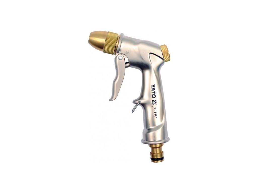Postřikovací pistole se dvěmi nastavitelnými funkcemi (proud, mlha), regulací průtoku a uzamknutím pro trvalý průtok. Pohodlné připojení hadic rychlospojkou 1/2". Nejlepší poměr cena kvalita. Dlouhá životnost. Materiál mosaz.