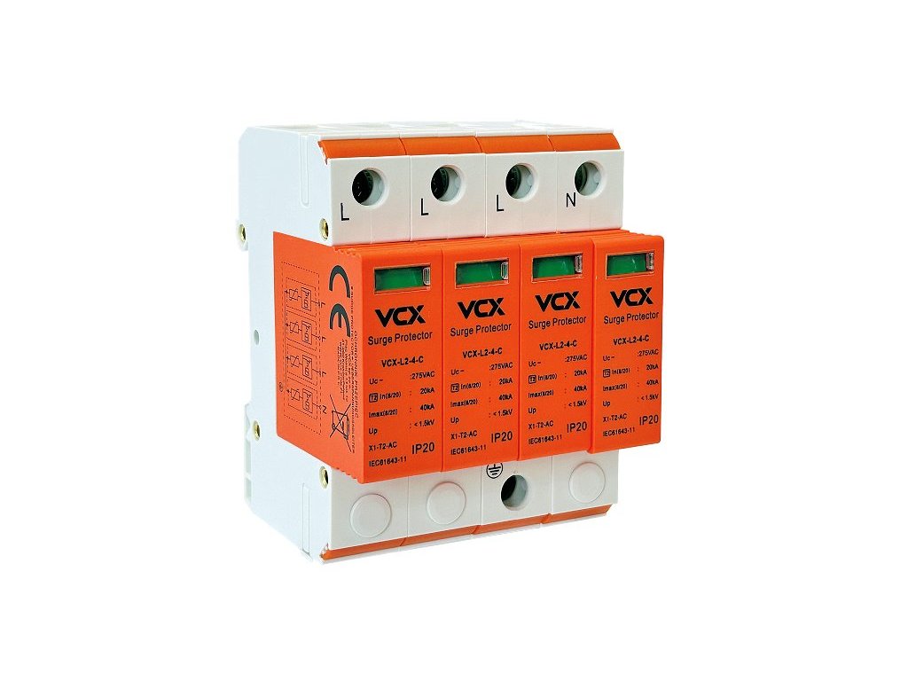 Modulární přepěťová ochrana VCX-L2-4-C třídy T2 je určená k ochraně napájecích instalací NN proti indukovaným a spínacím přepětím.